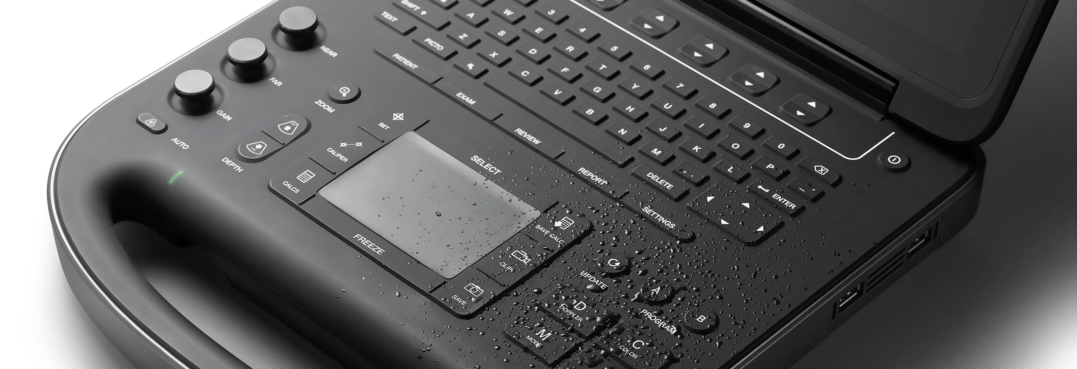 The Edge II features an easy-to-use interface for intuitive access to frequently used functions like gain and a wide-angle display with an anti-reflection coating for minimal adjustments during viewing. Designed with infection control in mind, the Edge II boasts a keypad with a seal extended to the edge to inhibit liquid ingress and low-profile keys with snap-dome technology for easy cleaning and tactile feedback.